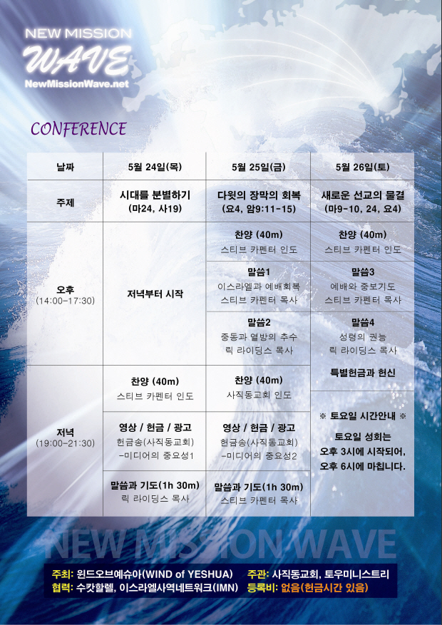 ´ÙÀÀÇ À帷 Âù¾ç ÃàÁ¦¿¡ ´ëÇÑ ÀÚ¼¼ÇÑ »çÇ×Àº www.WINDofYESHUA.com ¿¡¼ È®ÀÎÇØÁÖ½Ã±æ ¹Ù¶ø´Ï´Ù.^^ |